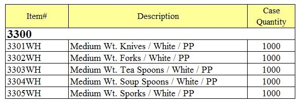 PRODUCT DETAIL     UTENSILS     Medium Weight PP Cutlery